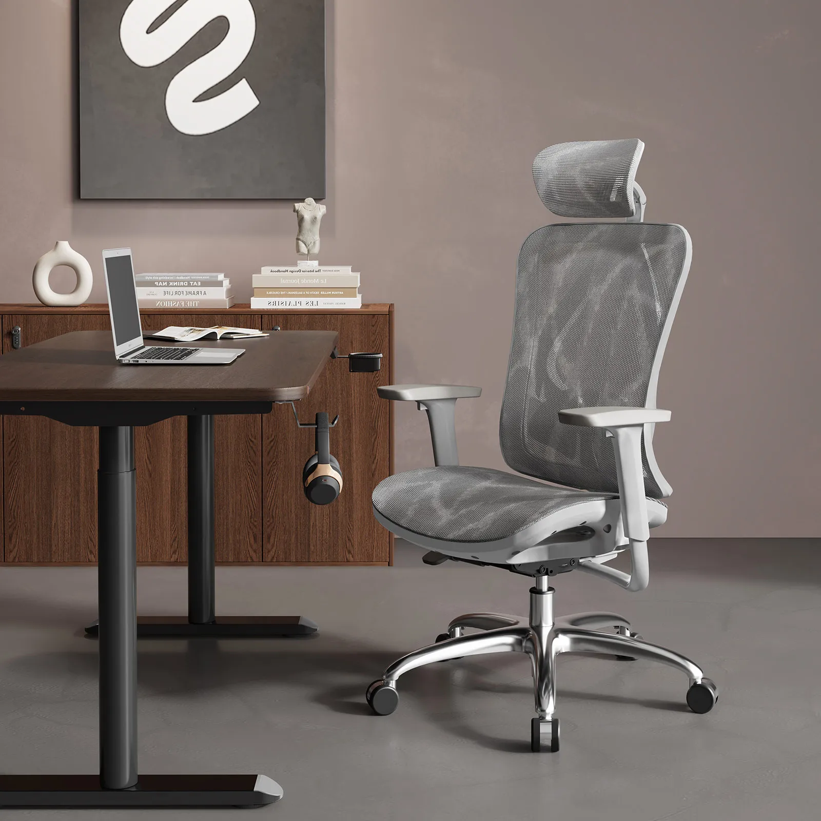 The chair's upgraded integrated stable back frame includes a 4-position lifting adjustment feature to cater to a wide range of body types. The S-shaped backrest design not only offers proper back support but also conforms to the natural curve of the human waist, contributing to better spinal health.